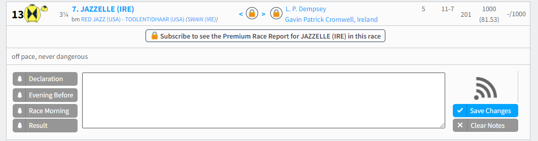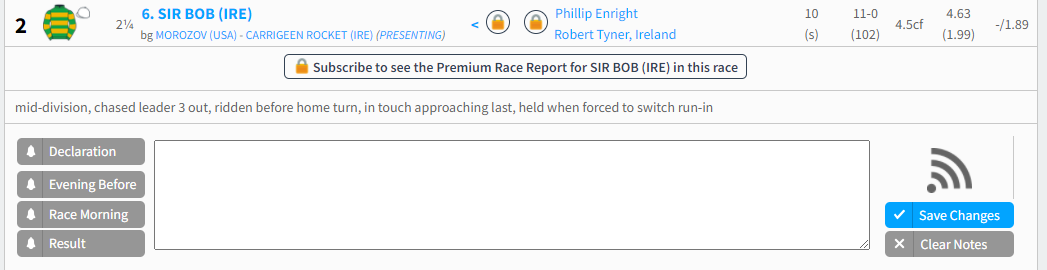 In the 7th he rode Sir Bob into 2nd place with a BSP of 4.63 and an ip low of 1.89
