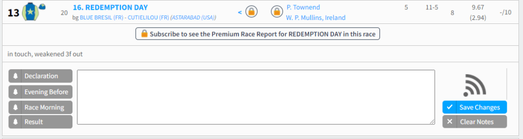 P. Townend rode winners in the 1st and 3rd races His next and final ride of the day was in the last on Redemtion Day BSP 9.67 ip low 10.0