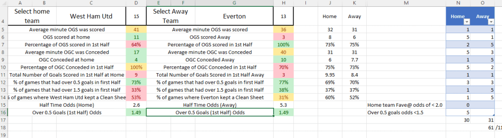 With a score of 61/110 it would seem likely that there will be at least 1 goal in the first half this afternoon and with odds of 1.49 on the half time overs market on betfair exchange