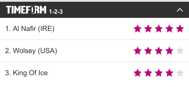 A feature of betfair exchange racing markets is that at the bottom of each race there is the “Timeform 1-2-3” which lists the top 3 rated horses according to Timeform in the race and gives them a star rating from 5 stars to 1 star.