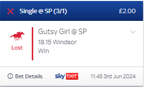 Second to run was Remaat backed at odds of 3/1 as SkyBet operated a BOG policy with this race.