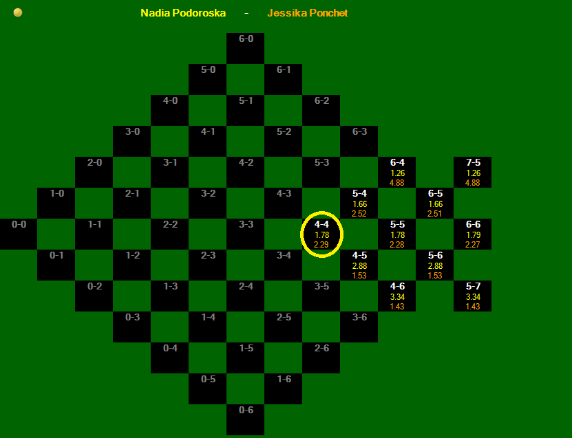 This round saw the match up of No 7 seed Andreeva and No 10 seed Navarro which meant that my total possible loss from round 4 would be reduced from a highest of £4.00 if all 4 won their matches to £2.00 if Sabalenka and Swiatek both won plus, either a net profit if Navarro (Odds 2.60) won, or a net loss if Andreeva (Odds 1.62) won. In the event Both Sabalenka and Swiatek did indeed win their matches and Andreeva dismissed Navarro in straight sets 6-2/6-3 this gave me a net loss of 37p on this match plus £2.00 loss on the other 2 players making the 4th round my first loss of the tournament of £2.37 making this a total tournament profit so far of £8.93. This also left 3 players in the Quarter Finals and a potential loss in that round of £3.00