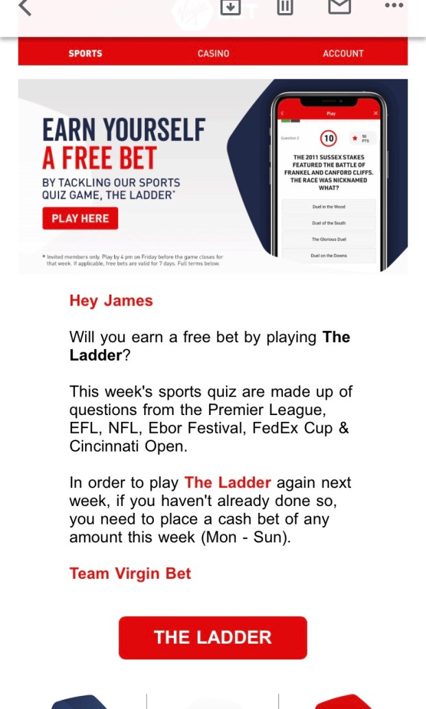As a follow on to the post earlier (Virgin Bet Fives of the Week Specials.) I have summarised the players and bets to see what, if anything, would have been Won!