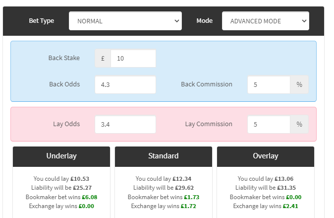 Making an exchange lay bet is not as simple as calculating your potential profit in a normal back bet. With a back bet you simply multiply your stake with the odds, subtract your stake and hey presto the figure left is your potential profit.
