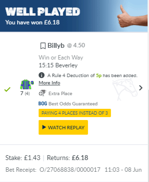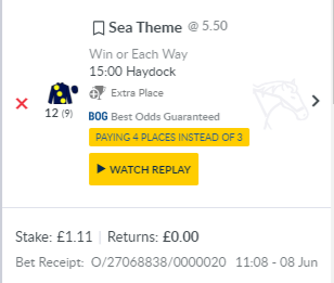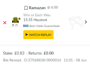 Badosa, the No 9 seed was the final casualty of the 1st round losing to Boulter 6-2/3-6/6-4. She was the biggest odds at 1.70 and with a stake of £1.43