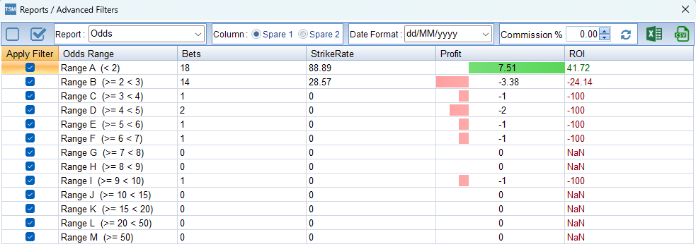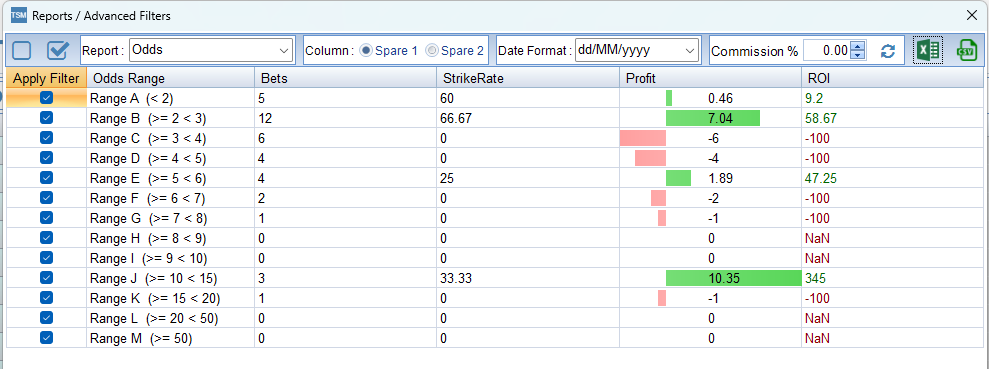 I made the rules at the beginning of the tournament and kept my liability to £1.00 per player and not by market which would have made things complicated in “Match-Up” matches. The chart above shows P/L in £ of each player. It is not actually necessary to have an exchange account as a similar result can be obtained by backing the opponents of the seeded players for your desired stake. As a quick comparison in the Match between Coco Gauff and Yastremska in the 1st round. I laid Gauff at odds of 1.2 giving me a profit of £5.00 but the best odds available to back Yastremska at the bookies was 4/1 (5.0), if you had backed her at these odds your profit would have been £4.00 instead of £5.00