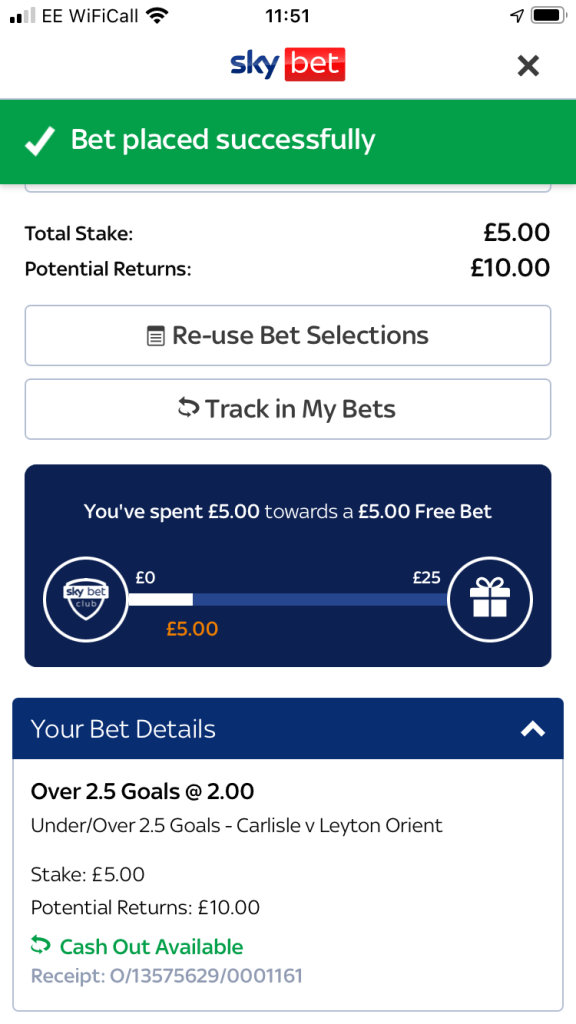 With only league 1 and league 2 games tonight A league 2 mid table clash between Carlisle and Leyton Orient provides a suitable game to start the week for my next free bet qualifying bet. As I don’t want to lose all my money on one bet I will be staking 5 x £5.00 bets each week to try and stay even if not a little bit in profit. (Remember a total of £25.00 has to be staked at 2.0 (Evens) or better to get your weekly free bet). I have staked £5.00 on the over 2.5 goals market at 2.0 for the following reasons. Carlisle Utd at home have a 72% record of scoring in the first half with 9 out of 23 goals coming in the first 15 minutes and another 10 in the last 15 minutes of the half while in the final third of the second half they have conceded 9 out of the 14 goals against them in the second half. With these stat in mind it would suggest that they are quick to attack in the first half hopefully putting their opponents on to the back foot but let themselves down at the back end of the game indicating perhaps a 2-1 win for the home team. Other factors that give the bet a little weight is that Carlisle have conceded at least one goal in the last 11 games (Both home and Away) but they have scored in all of their home games this season and averaging 2. Leyton Orient have conceded have scored in 71% of their away games this season. Carlisle, when at home to other mid table sides have a 2-1 win v Salford (9th), 3-1 v Bradford (12th) and 4-0 v Stevenage (15th). Leyton’s away games when playing teams above them in the league have all ended with at least 3 goals being scored except for 4 Tranmere, Bolton, Newport and Bradford.